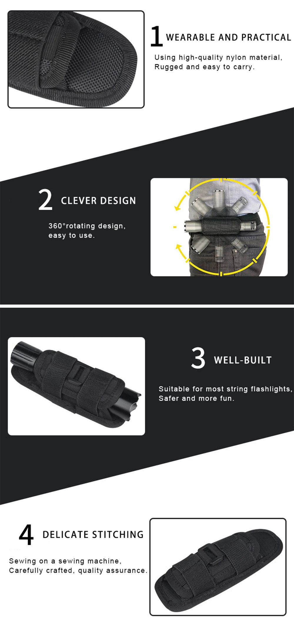 2.Keeps your flashlight in safe condition, not easy to fall off or attrit.